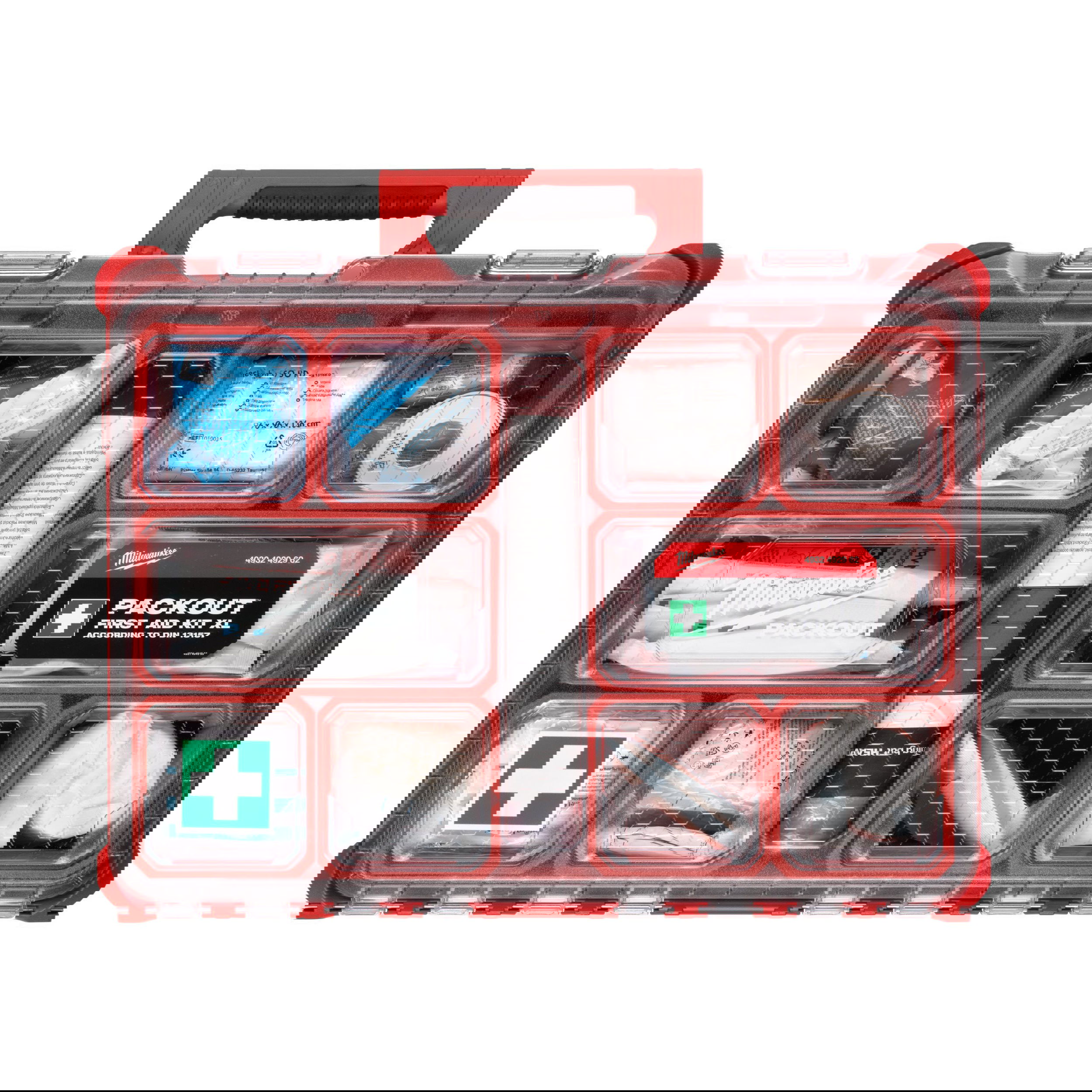 - Vészhelyzet esetén gyorsan azonosítható a piros színű PACKOUT™ rendszerezőnek köszönhetően.